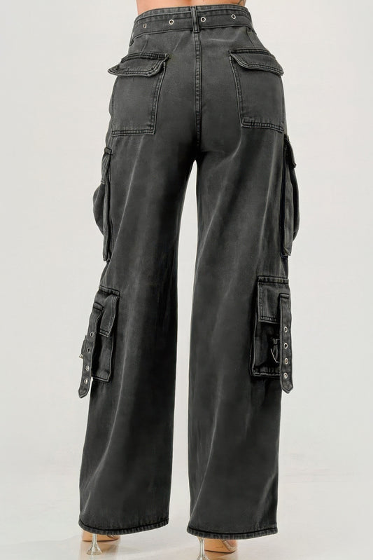 Belted Denim Cargo Jean